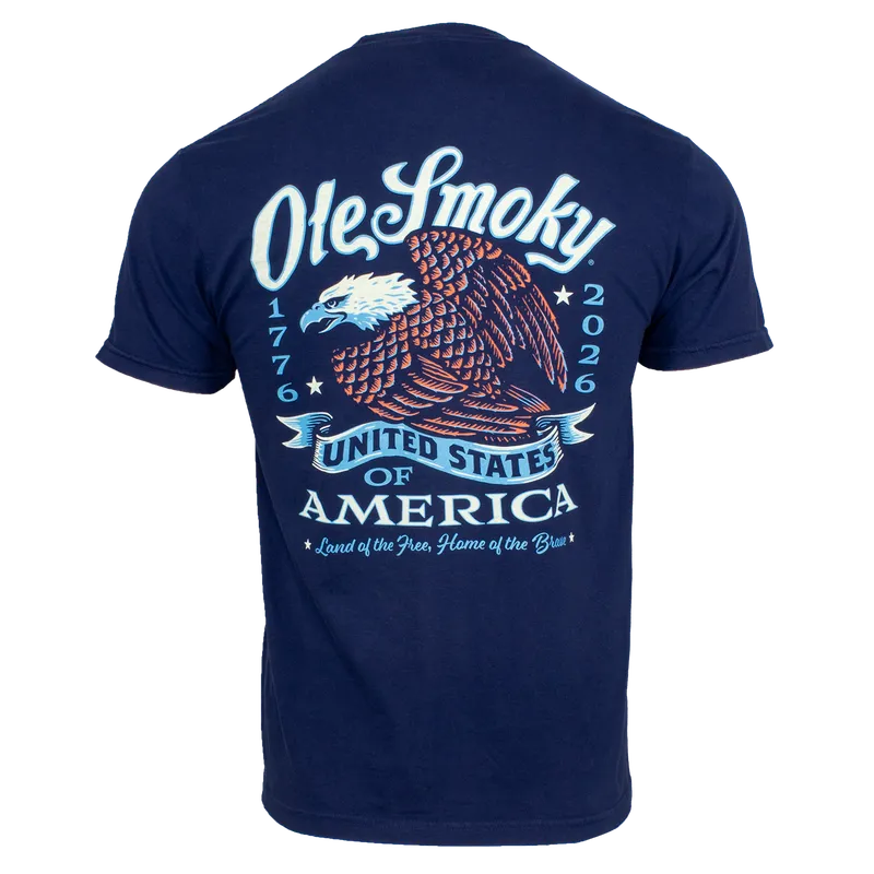Ole Smoky's been distilling Tennessee whiskey in a converted barn since 2010, turning moonshine from folklore into something you can actually buy legally. This tee wears the Brave Eagle badge, the kind of symbol that looks equally at home at a distillery tour or just living your life. Grab one and join the ranks of people who appreciate a good story with their merch.