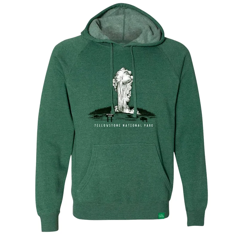 Yellowstone's geysers, wildlife, and dramatic landscapes make it one of the most unforgettable places on the planet. Old Faithful steals the show with clockwork eruptions that always impress. This green hoodie pays tribute with a design that feels warm and adventurous. Put it on and visitors may assume you know the best viewpoint and can spot bison long before anyone else.