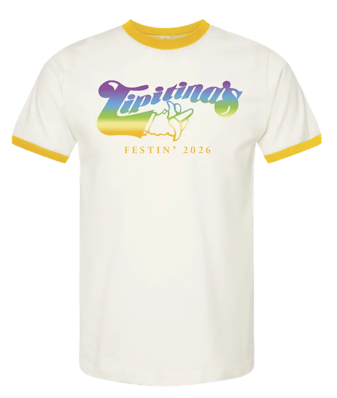 A group of music fans opened Tipitina's on January 14, 1977, at the corner of Napoleon and Tchoupitoulas in Uptown New Orleans — built around a single idea: give Professor Longhair a place to play. The revered R&B pianist performed there until his death in 1980, and the club that bears his song's name has been the spiritual hub of New Orleans music ever since. Now owned by the funk band Galactic, Tips is still where the city comes to dance. This Festin' 2026 ringer tee - vintage white with yellow contrast trim, 100% US ring-spun cotton - is the one you wear to the show and keep forever.
