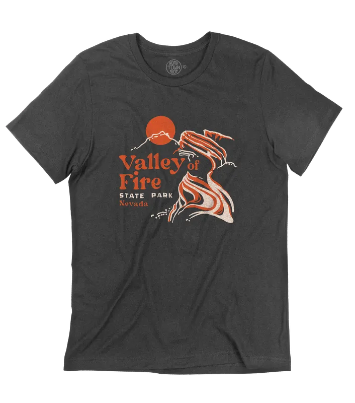 There is nothing subtle about Valley of Fire's bright red rock formations or the way they glow at sunrise. Visitors show up expecting cool geology and leave feeling like they wandered onto another planet. This park tee bottles that wild, desert beauty with bold color and clean lines. Once you throw it on, you start to look like someone who road trips with snacks, maps, and good taste in scenery.